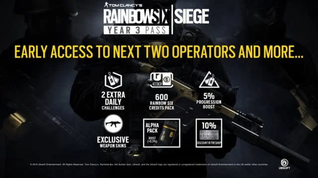 End card promoting two new Operators including other characters provided with the Season 3 pass for Tom Clancy’s Rainbow Six Siege.